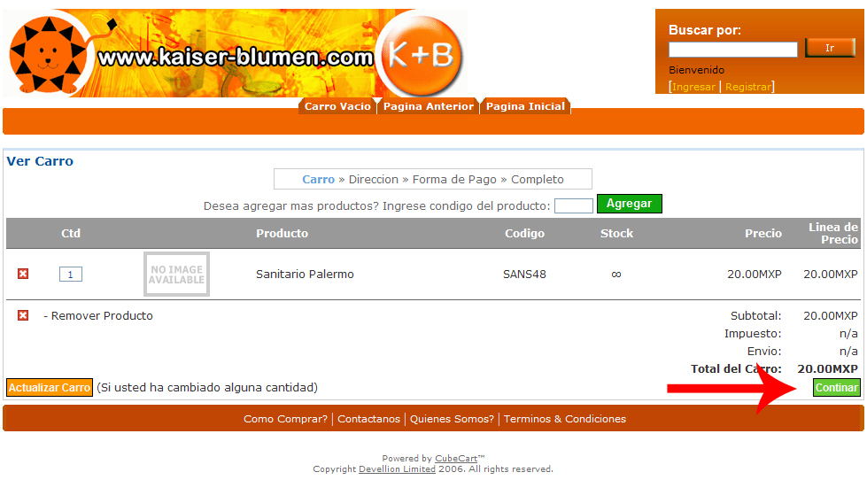 1.-Por favor agregue los artículos que le gustaría adquirir a su carrito de compras