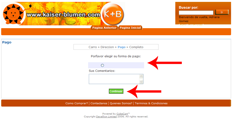 4.-Después haga click en el circulo donde le pide el tipo de pago