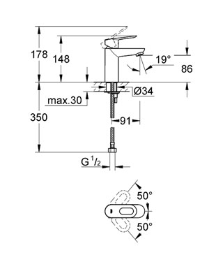 Descripción: Llave Monomando para lavabo sin pop-up, modelo BauCosmopolitan.