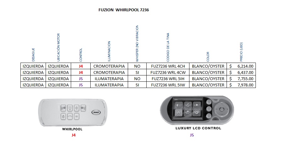 (Codigos nuevos: FUZ7236WRL4CH , FUZ7236WRL4CW