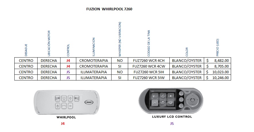 (Codigos nuevos: FUZ7260WCR4CH , FUZ7260WCR4CW