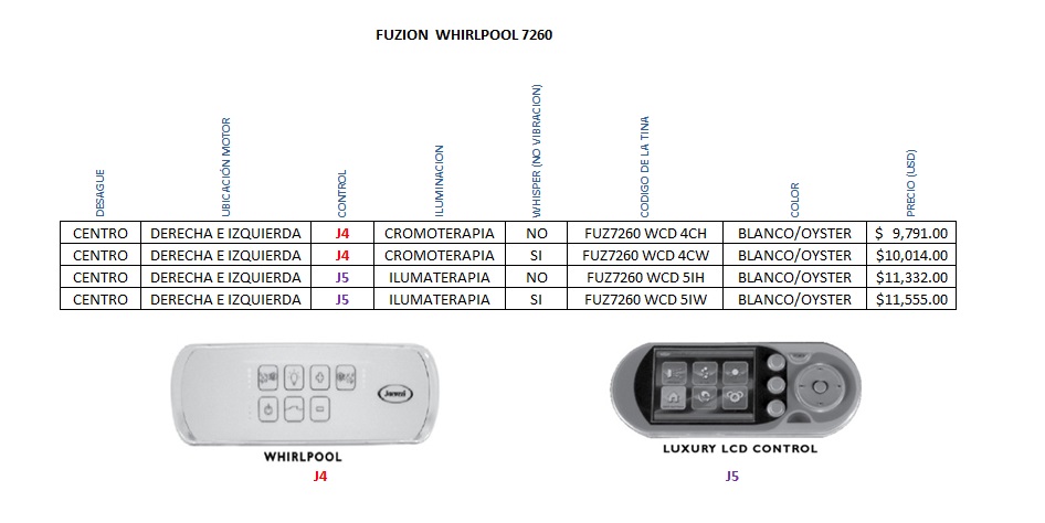 Fuzion 7260 con Sistema Dual para Submontar JACUZZI
