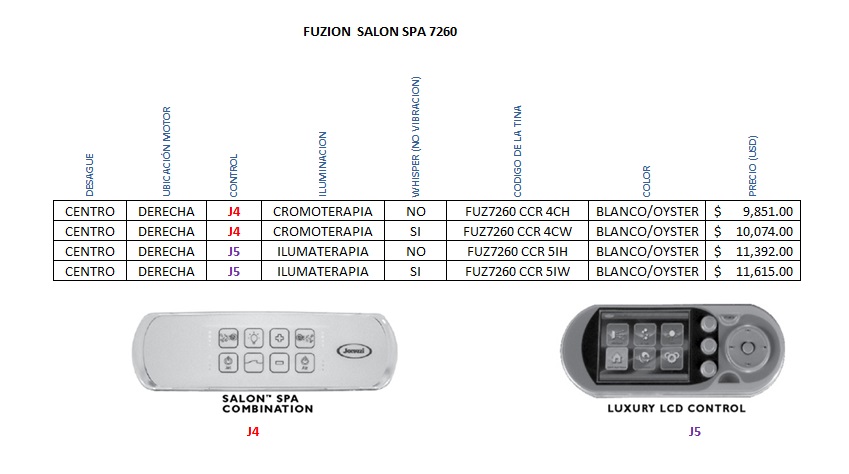 Fuzion 7260 Salon Spa para Submontar, Tina Combo JACUZZI