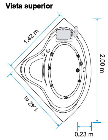 Descripción: Tina Doble modelo Belize con Sistema de Hidromasaje, 6 jets dirigibles