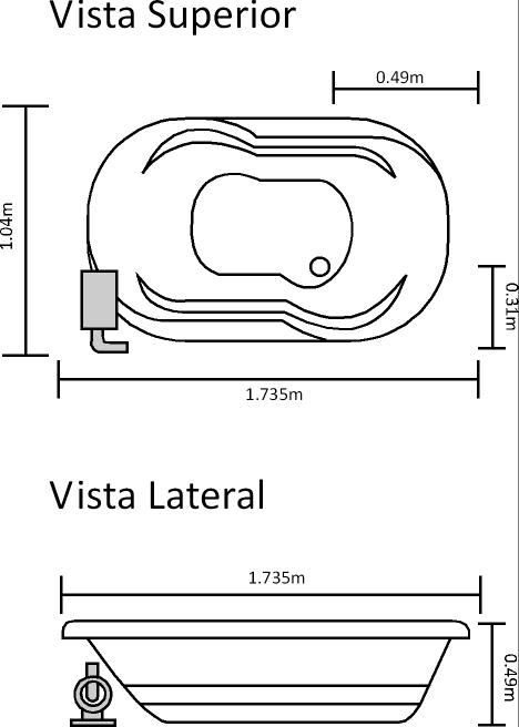 Descripción: Tina sencilla modelo Hana con Sistema de Hidromasaje, 6 jets