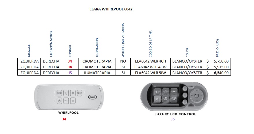 Descripción: Sistema de hidromasaje Elara que incluye 4 jets TheraPro