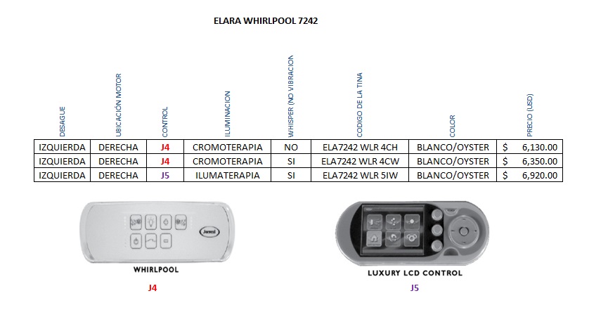 Descripción: Sistema de hidromasaje Elara que incluye 4 jets TheraPro