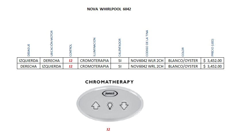 (Codigos nuevos: NOV6042WLR2CH,  NOV6042WRL2CH)