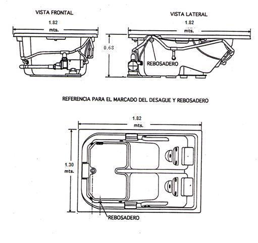 Descripción: Sistema de hidromasaje con 10 jets TheroPro regulables y dirigibles, 6 jets AccuPro dirigibles. Cuenta con un motor de 1HP. En el interior cuenta con dos asientos reclinados y ergonomicos.
